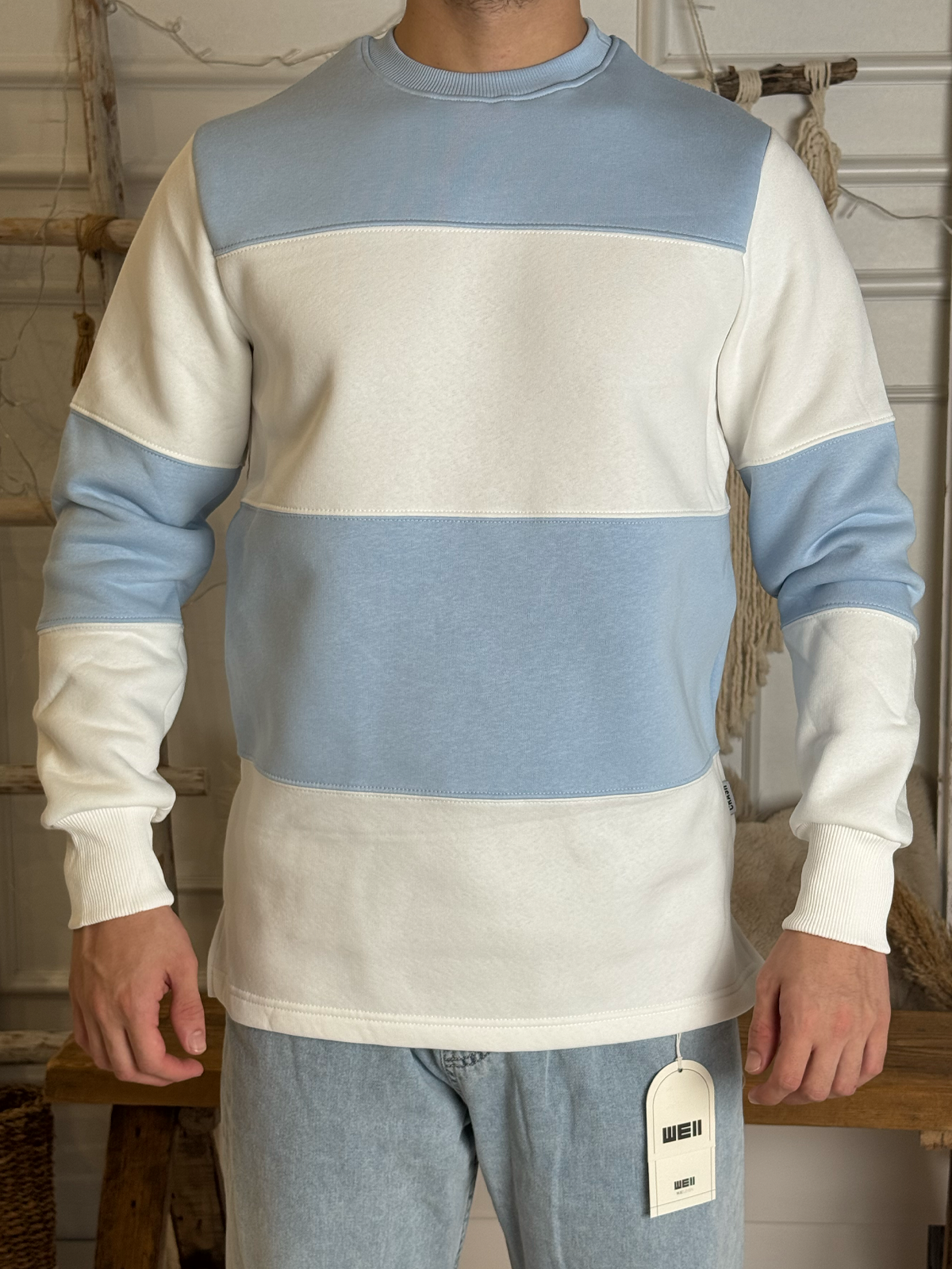 Crash Bisiklet Yaka Şeritli Sweatshirt Mavi (CRH1950)