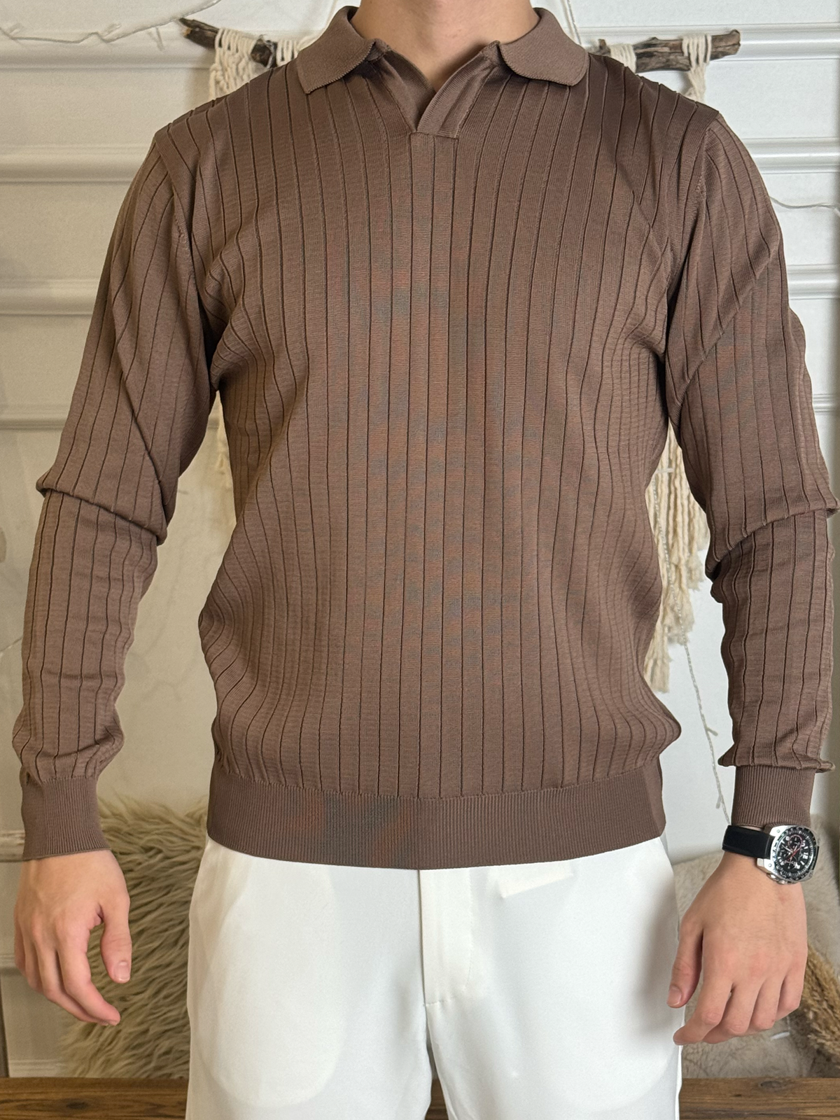 Hawking Çizgili Triko Kazak Kahverengi (HWK2793)
