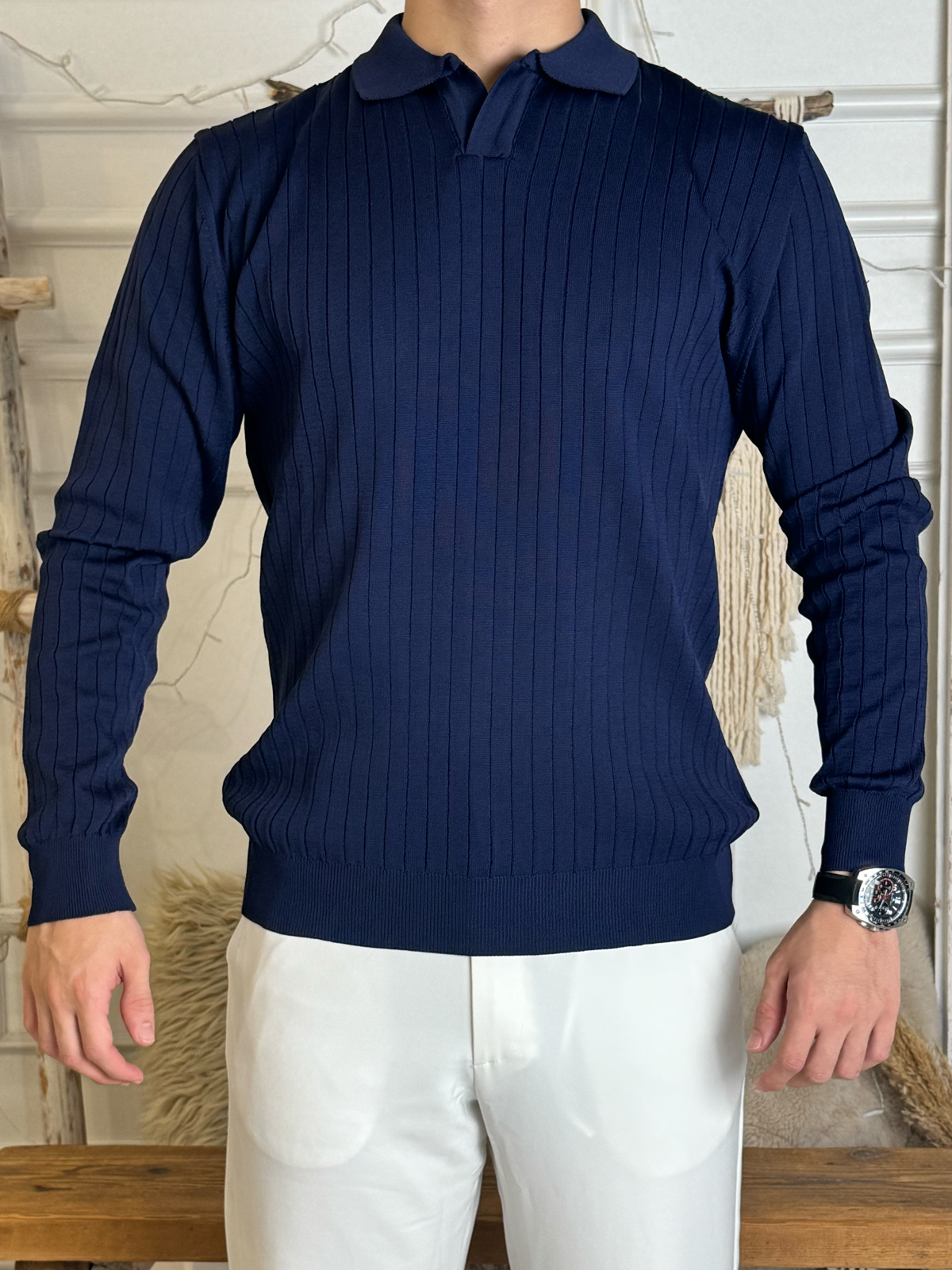 Hawking Çizgili Triko Kazak Lacivert (HWK2793)